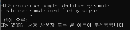 ORA-65096 오류 메세지는 오라클 12c에 네이밍 규칙이 계정명 앞에 c##을 붙이도록 바뀌었기 때문이다.